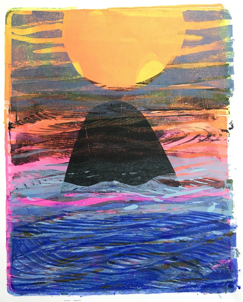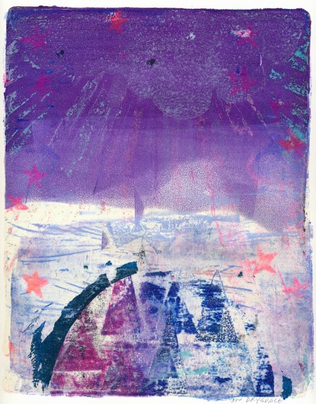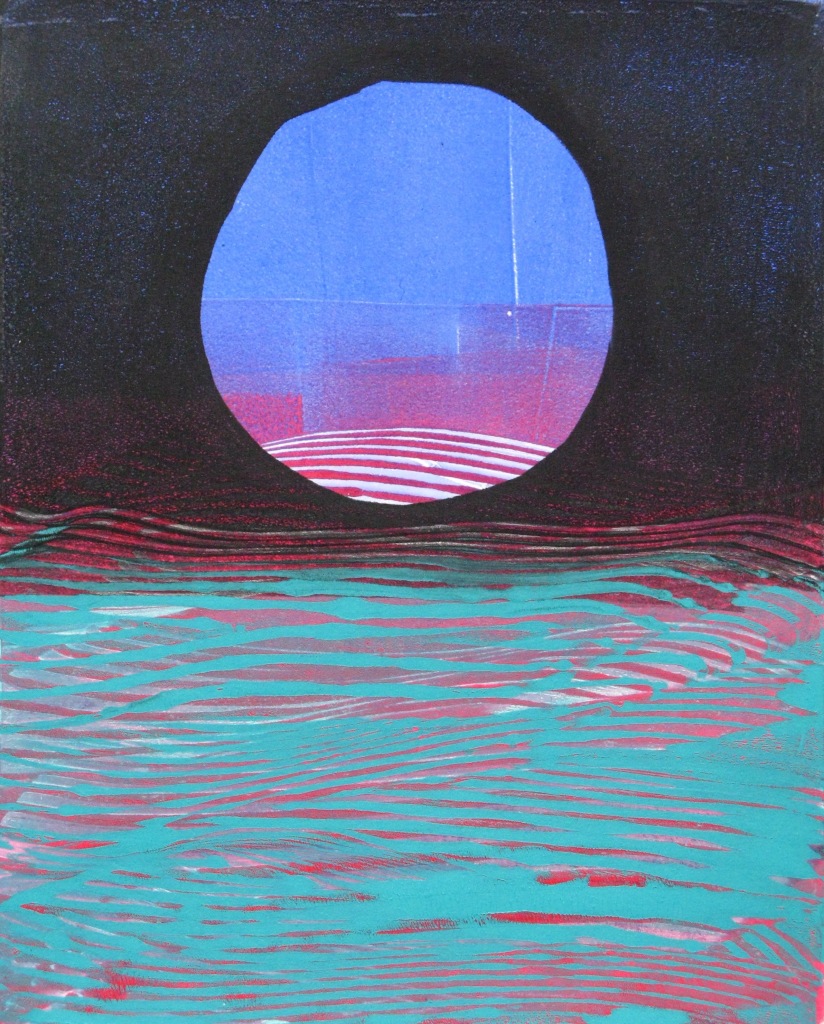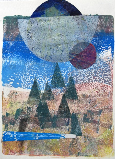 Gelli-plate print, acrylic on paper 8"x 10" SOLD