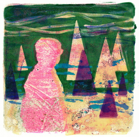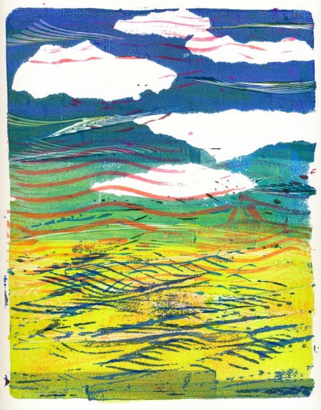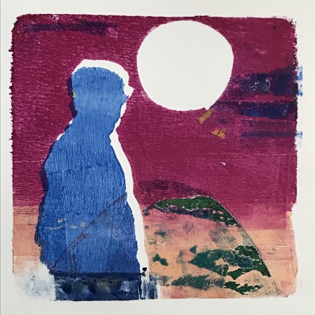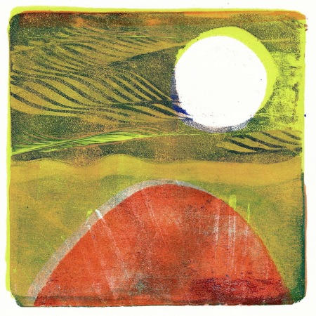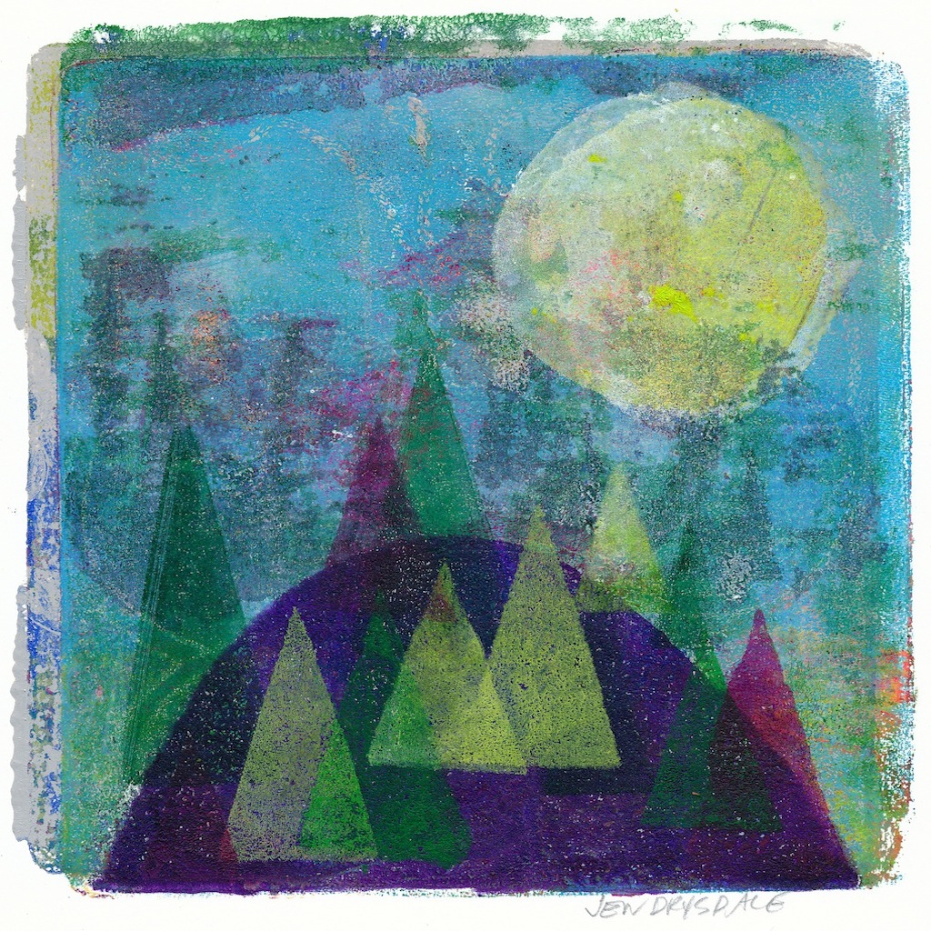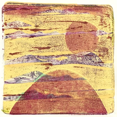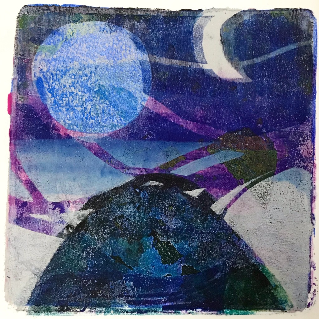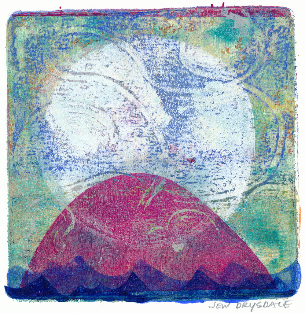 Gelli-plate print, acrylic on paper 5"x 7" SOLD
