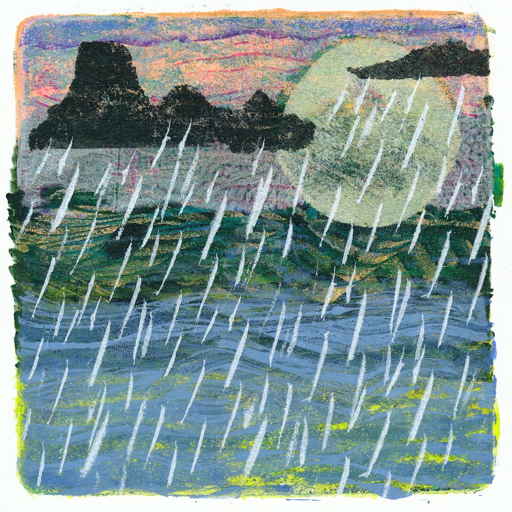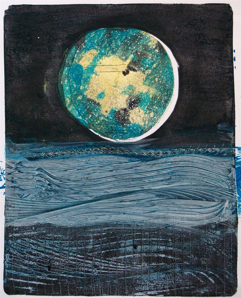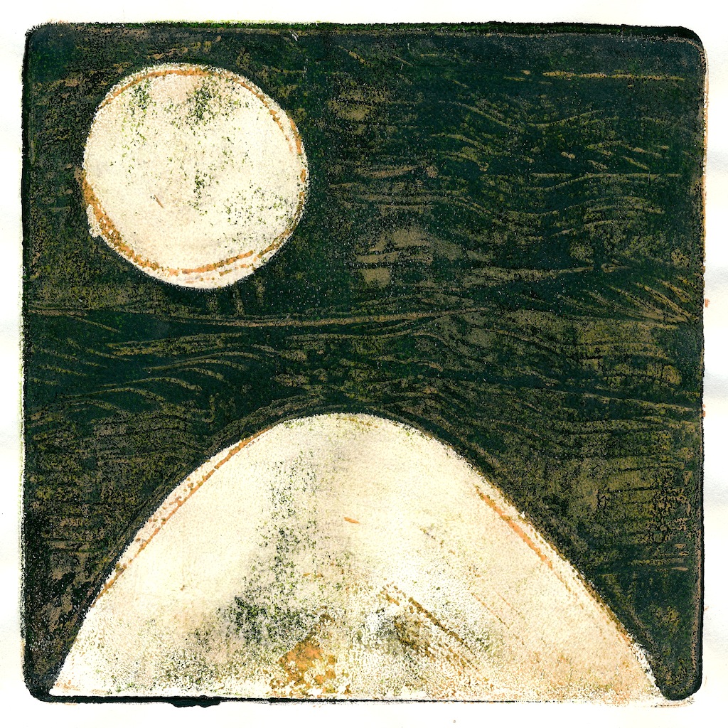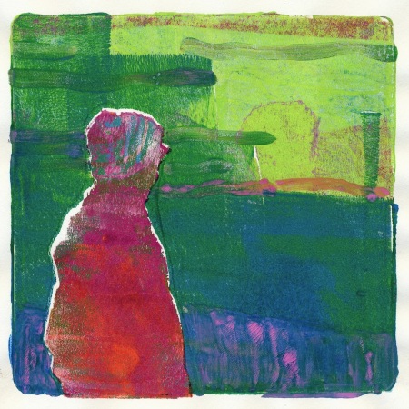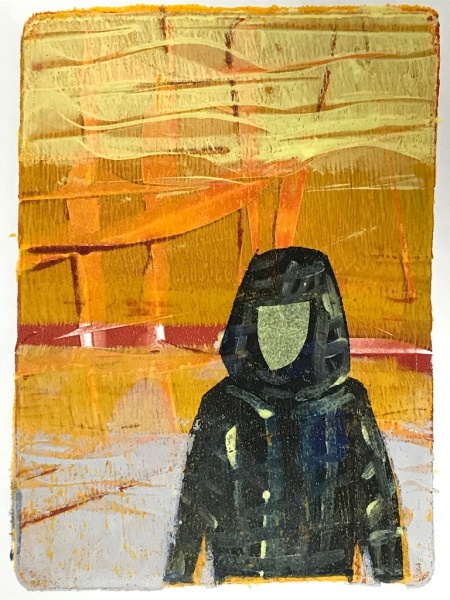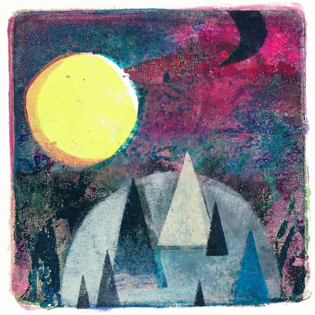 Gelli-plate print, acrylic on paper 5"x 7" SOLD