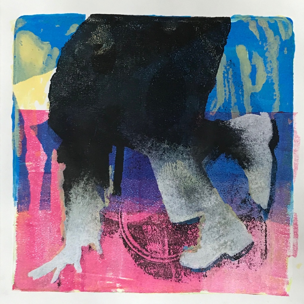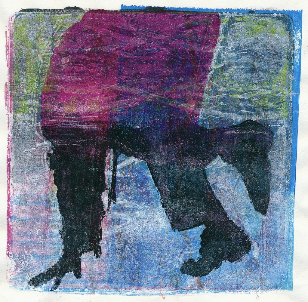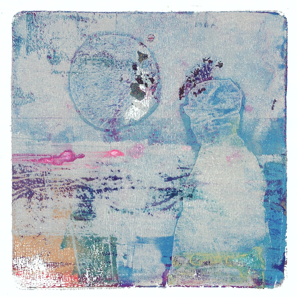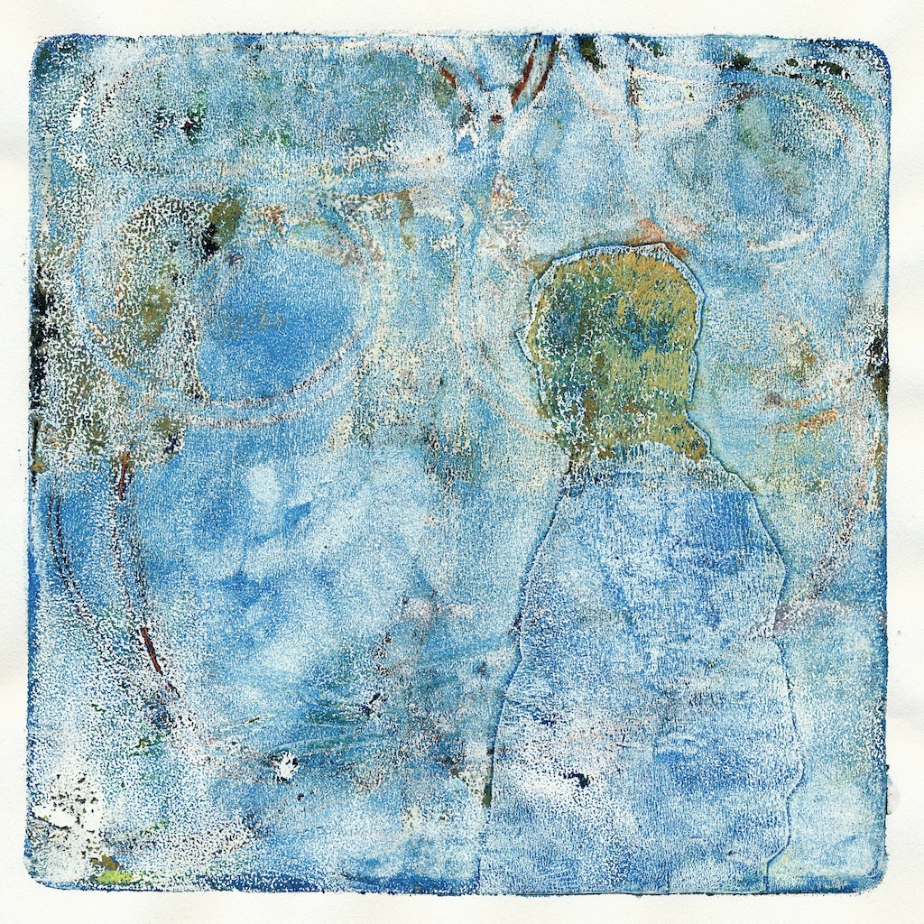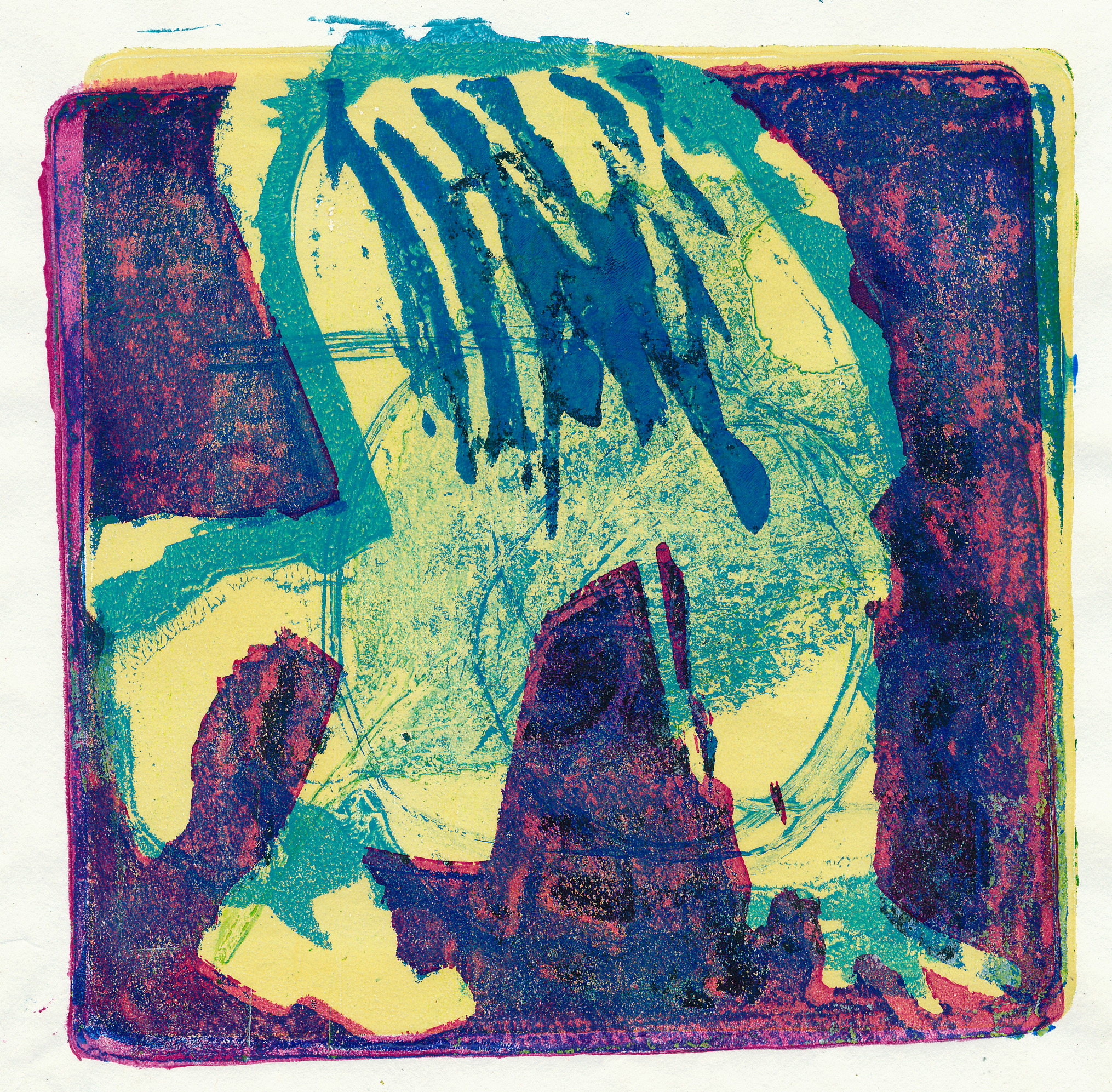 Gelli-plate print, acrylic on paper 6"x 6" artist's collection