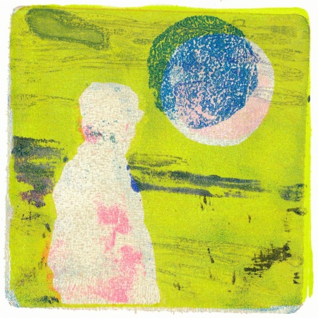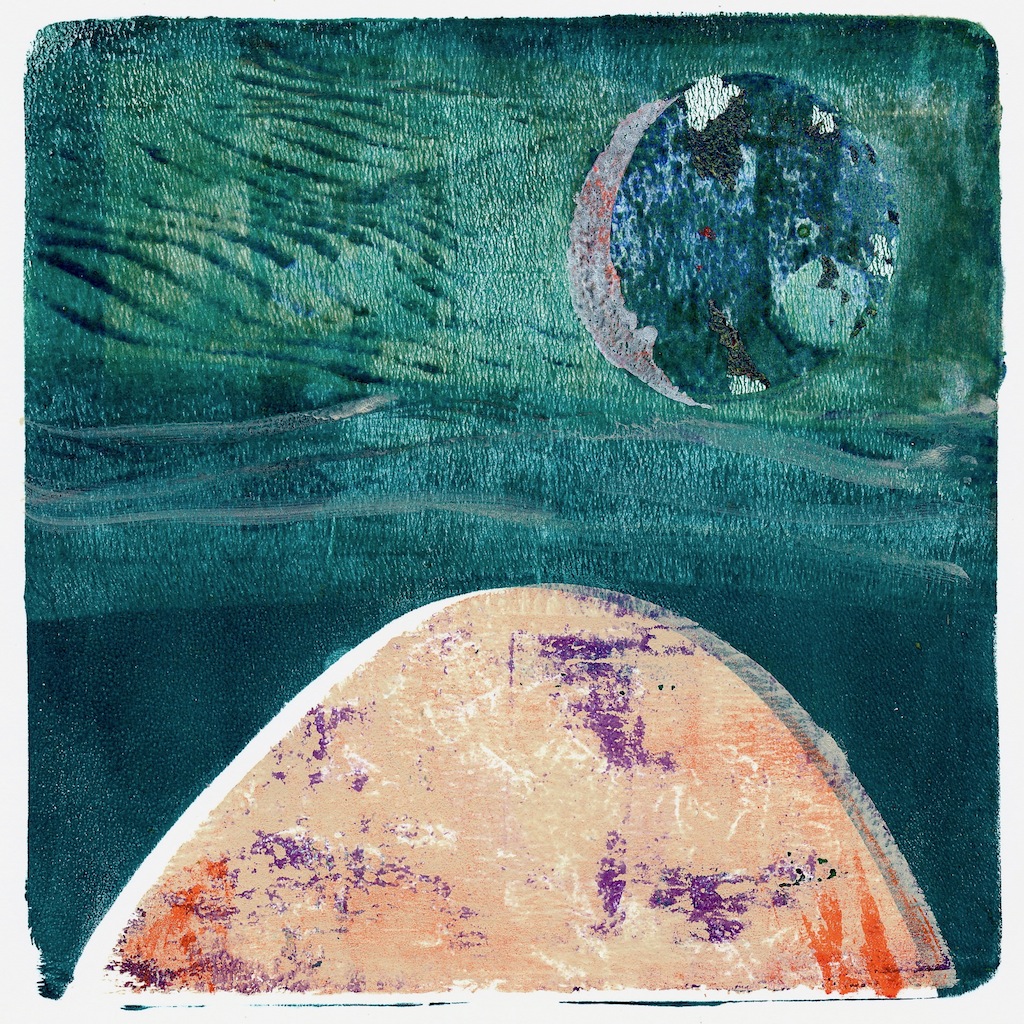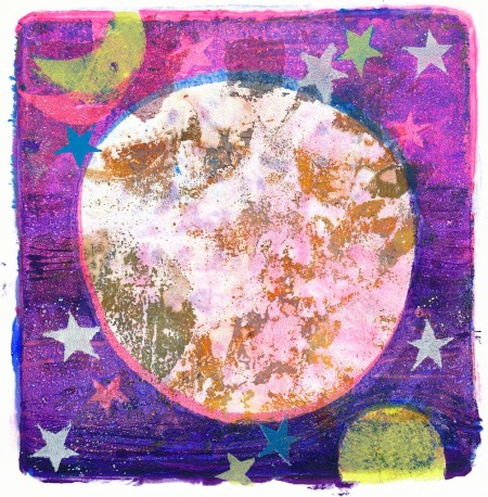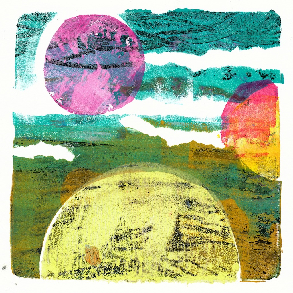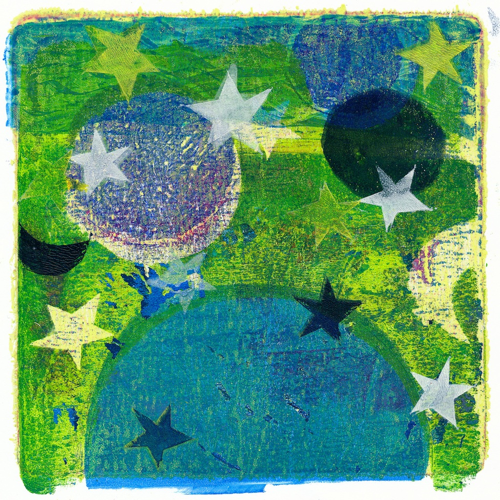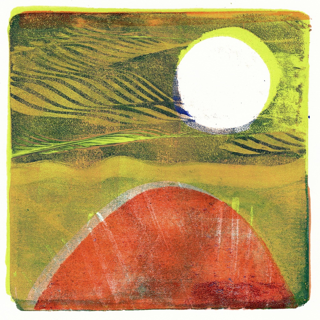 Gelli-plate print, acrylic on paper 6"x 6" artist's collection