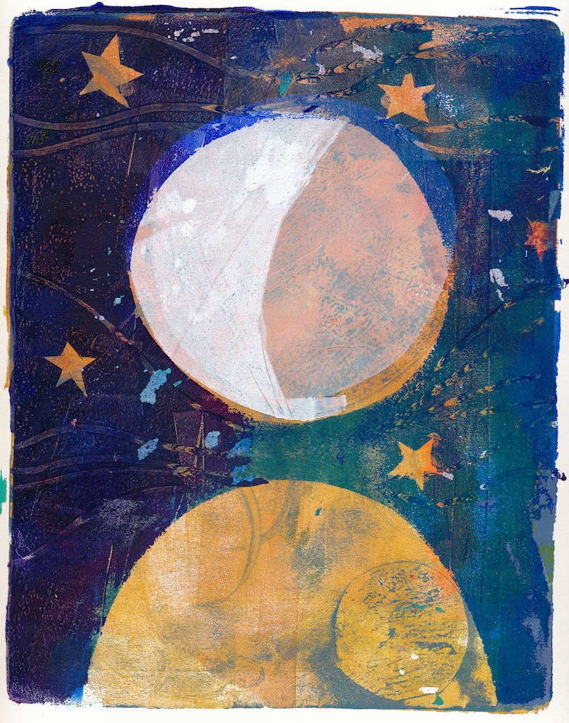 Gelli-plate print, acrylic on paper 8" x 10" SOLD