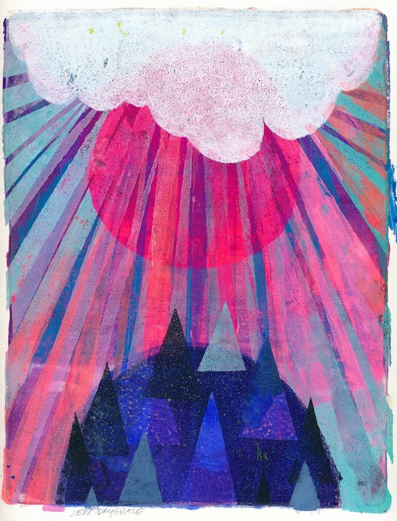 Gelli-plate print, acrylic on paper 8" x10" SOLD