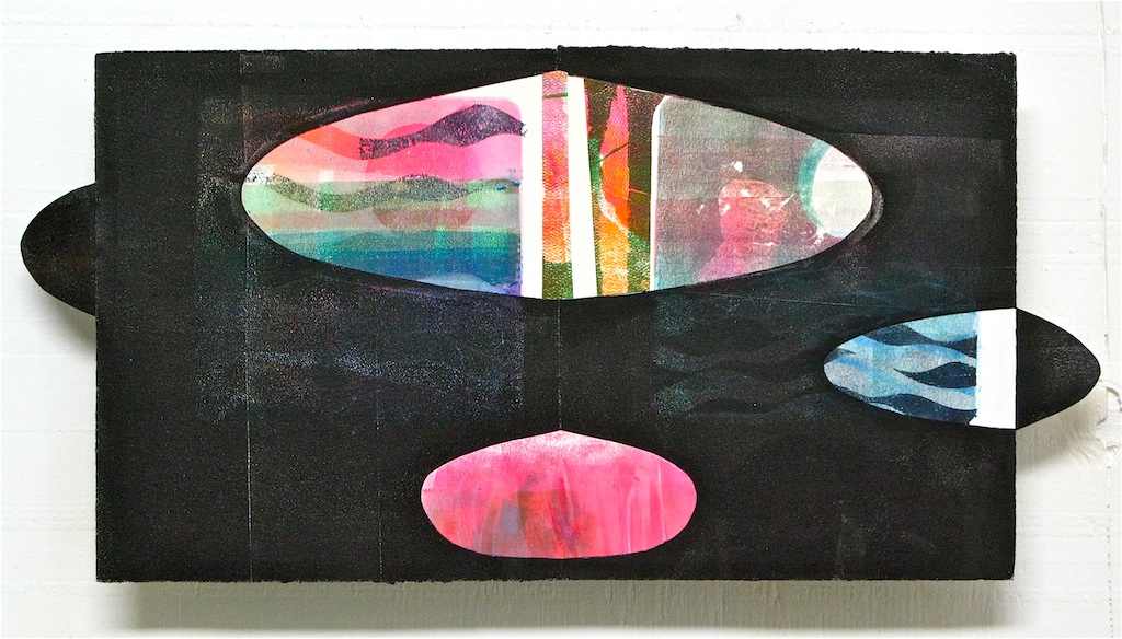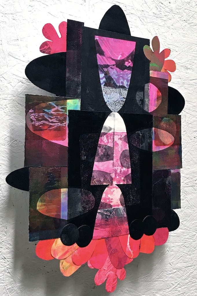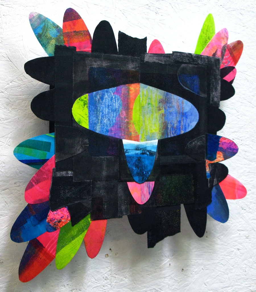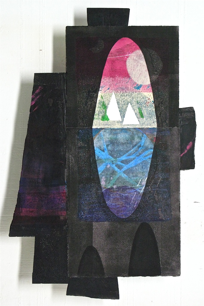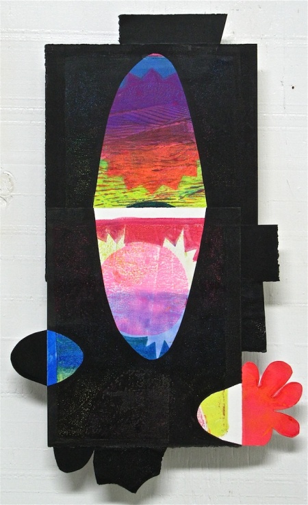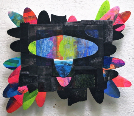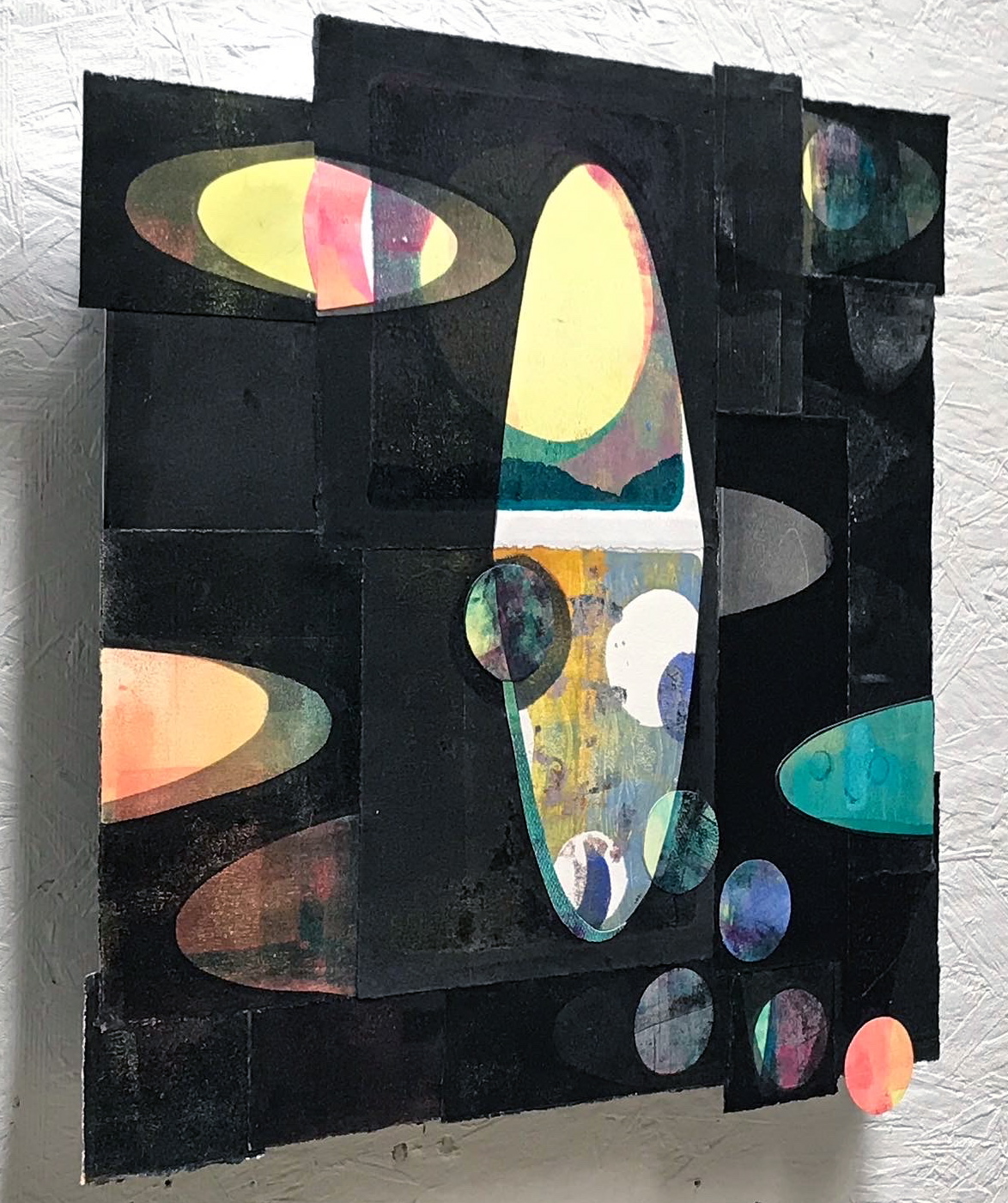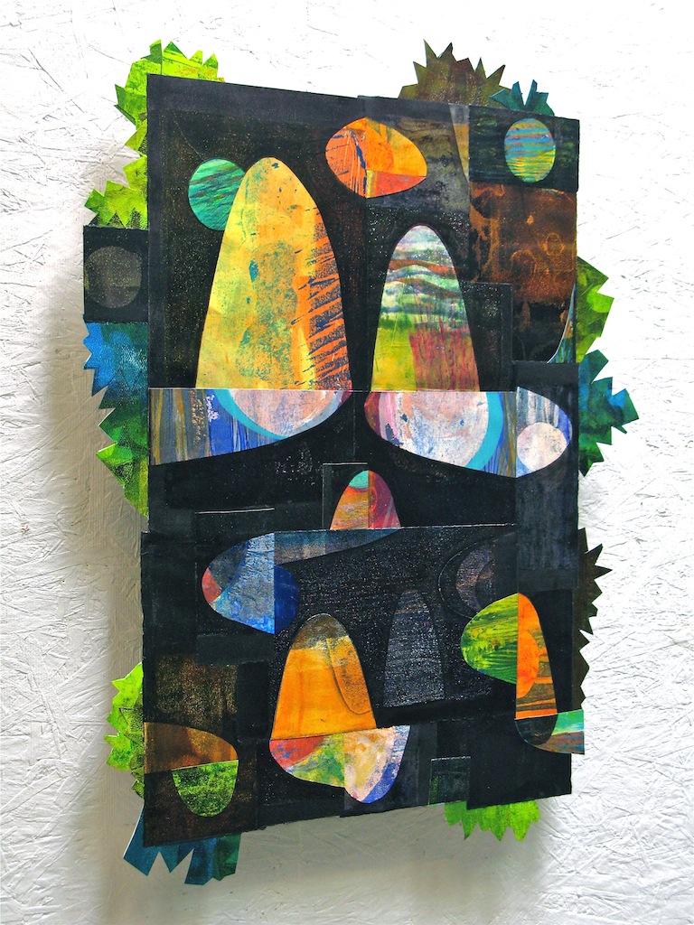 Gelliprint monoprint, collage, assemblage, acrylic on paper 16.75" x 17.125" side view SOLD
