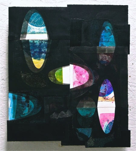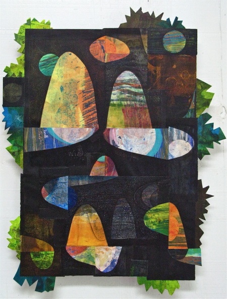 Gelliprint monoprint, collage, assemblage, acrylic on paper 21.75" x 26.5"