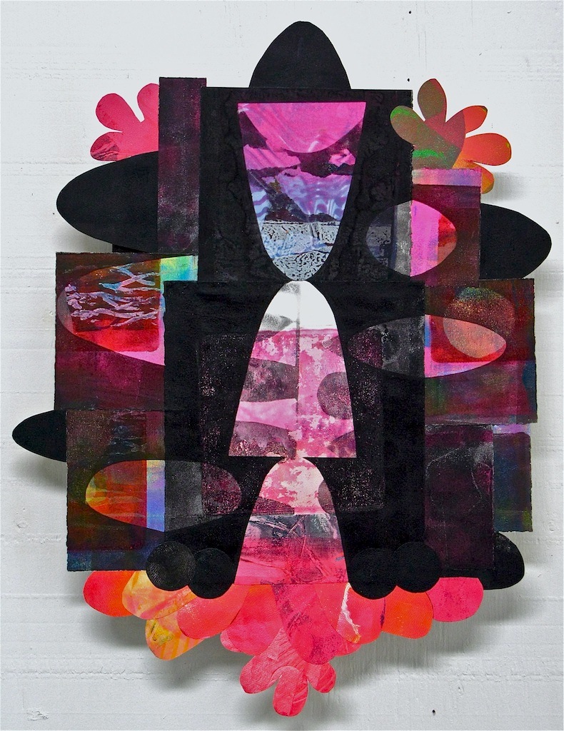 Gelliprint monoprint, collage, assemblage, acrylic on paper 23" x 19"
