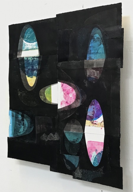 Gelliprint monoprint, collage, assemblage, acrylic on paper 17.5" x 23" side view