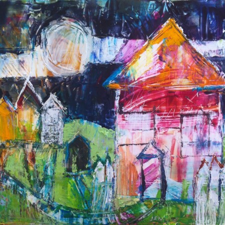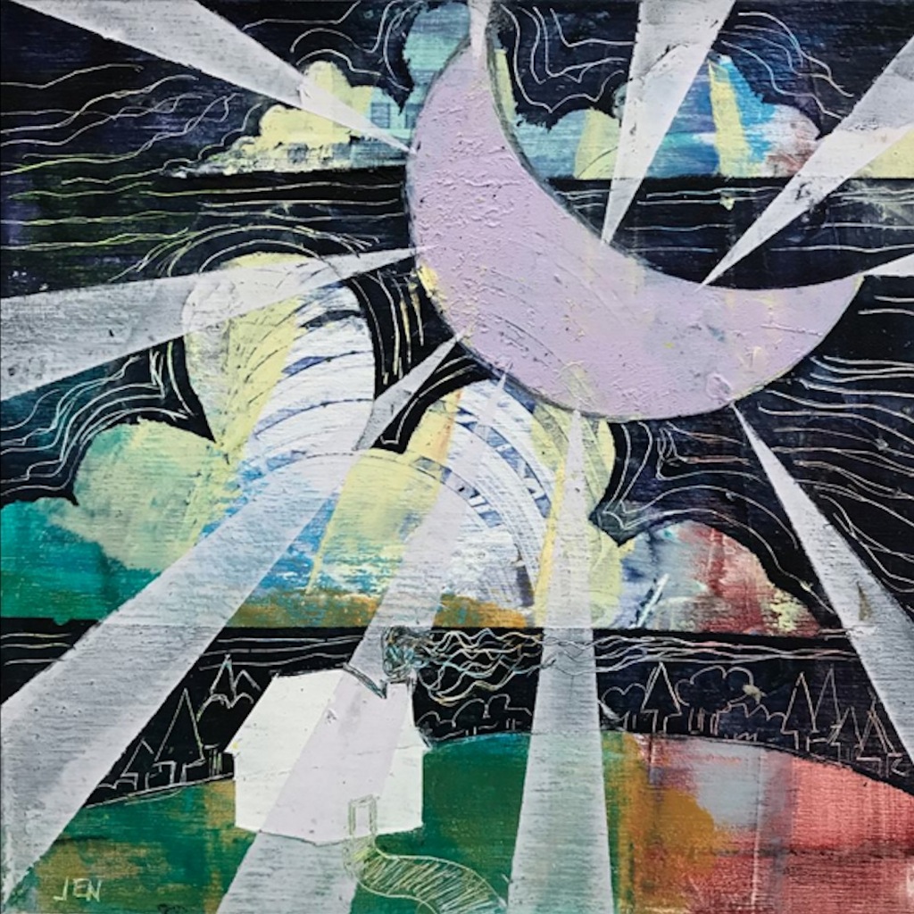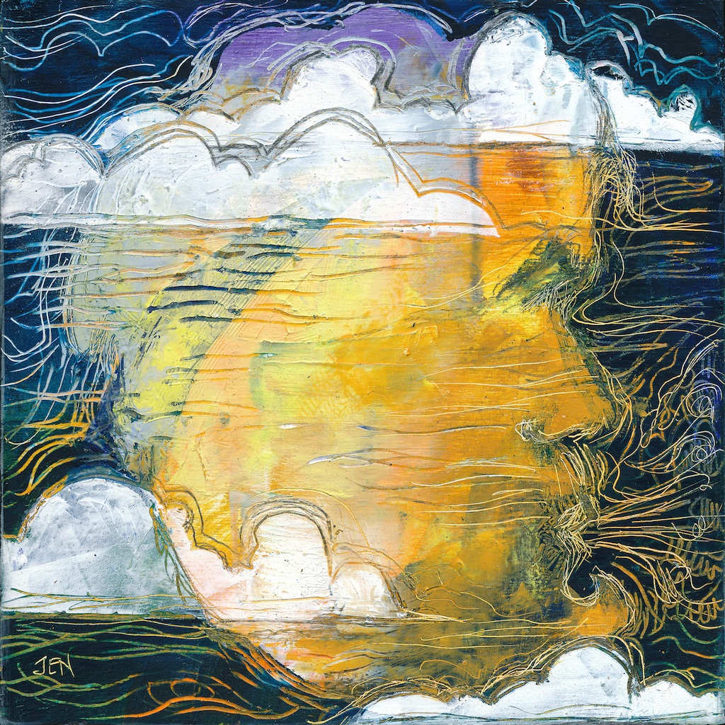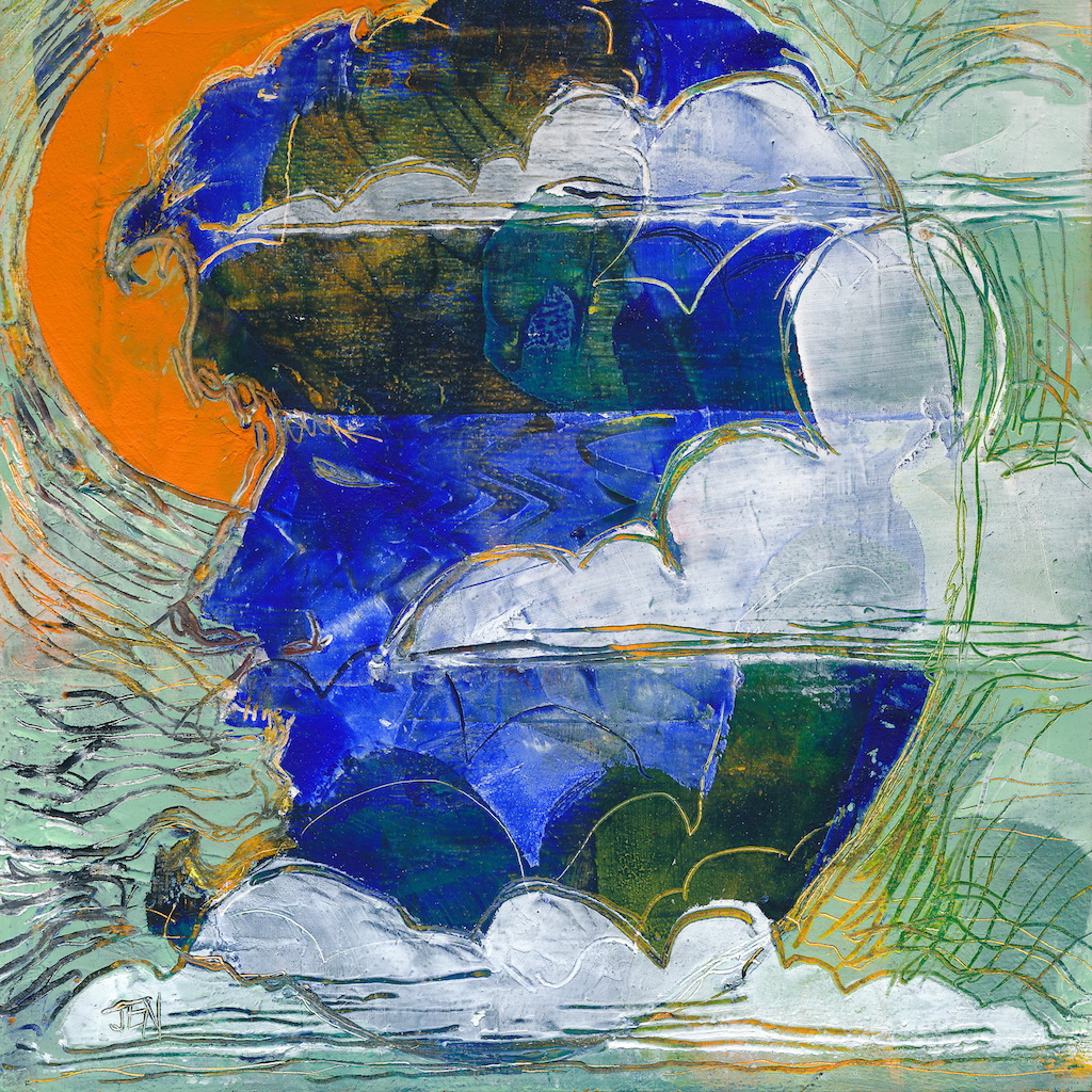 Oil & cold wax, oil pastel on cradled board 12" x 12" SOLD