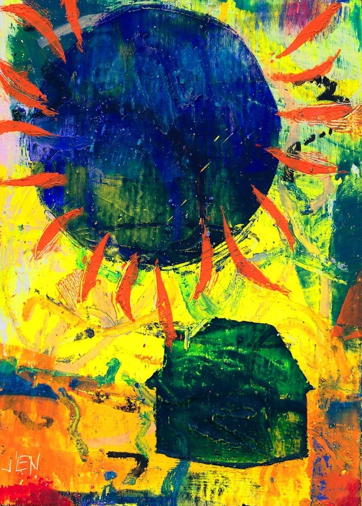 Oil & cold wax, acrylic, oil pastel, charcoal, coloured pencil on illustration board 12" x 9" SOLD