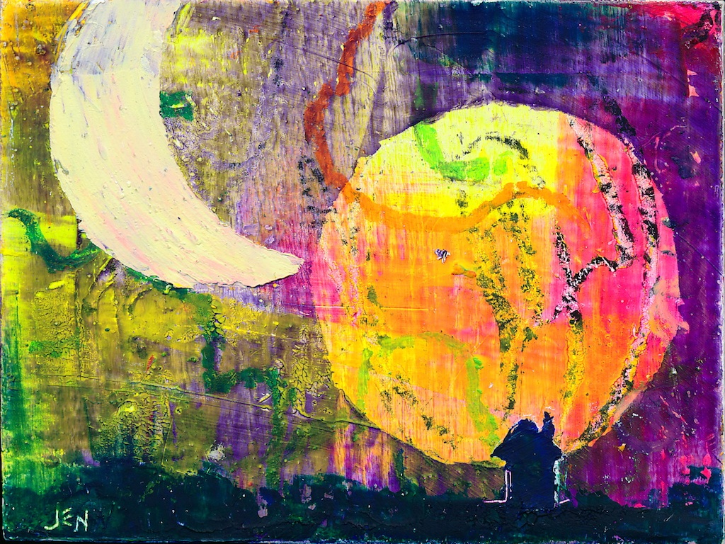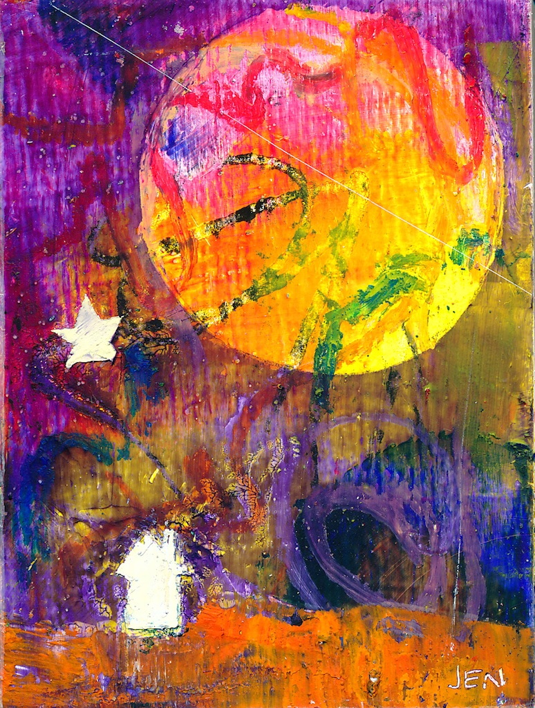 Oil & cold wax, oil pastel on cradled board 4" x 3" SOLD