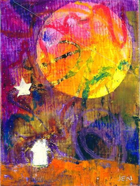 Oil & cold wax, oil pastel on cradled board 3" x 4" SOLD
