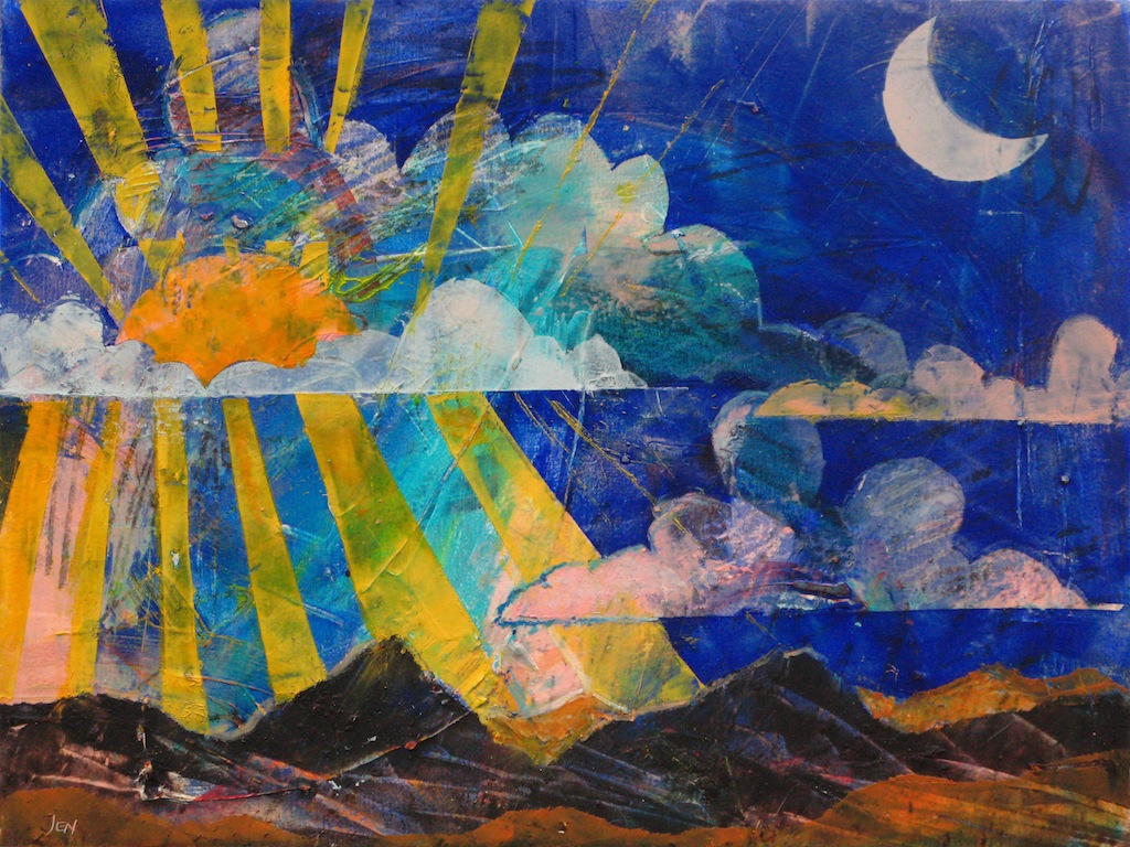 Oil & cold wax, oil pastel, charcoal on illustration board 9" x 12" SOLD