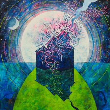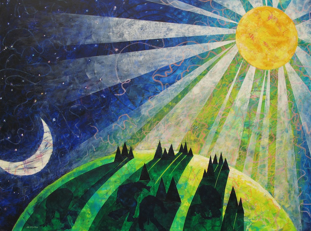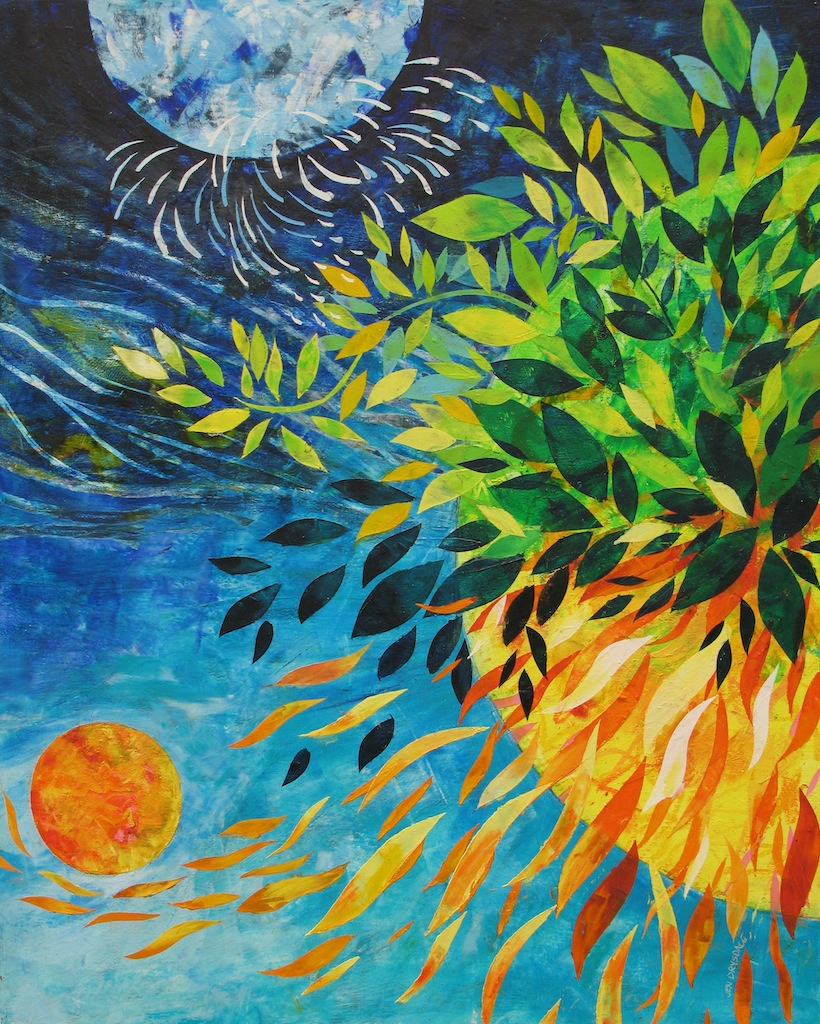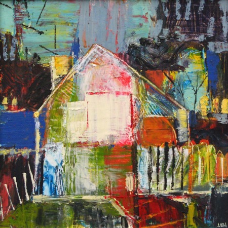 Oil & cold wax, acrylic ink, oil pastel, charcoal on cradled board 24" x 24" Donation to Sechelt Hospital Foundation Gala Fundraiser Oct. 2018
