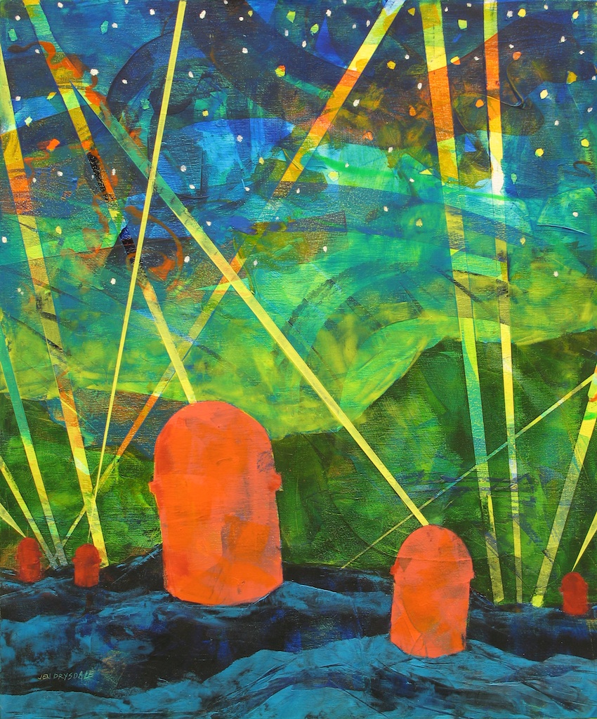 Oil & cold wax, acrylic ink on cradled board 20" x 24"