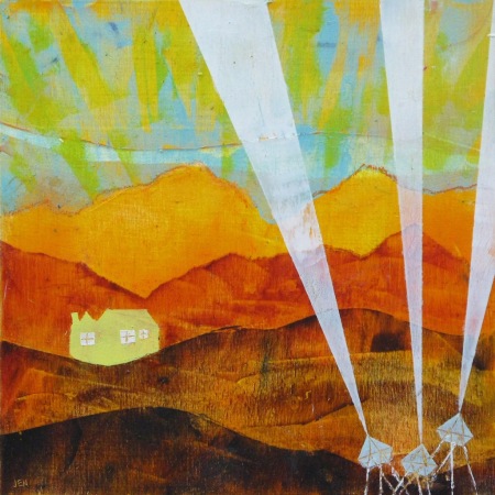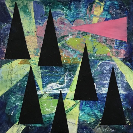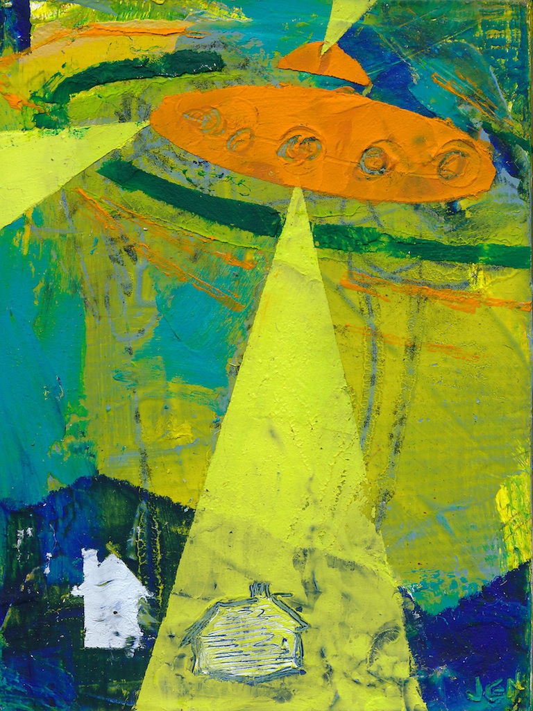 Oil & cold wax, acrylic paint, collage on cradled board 20" x 24"